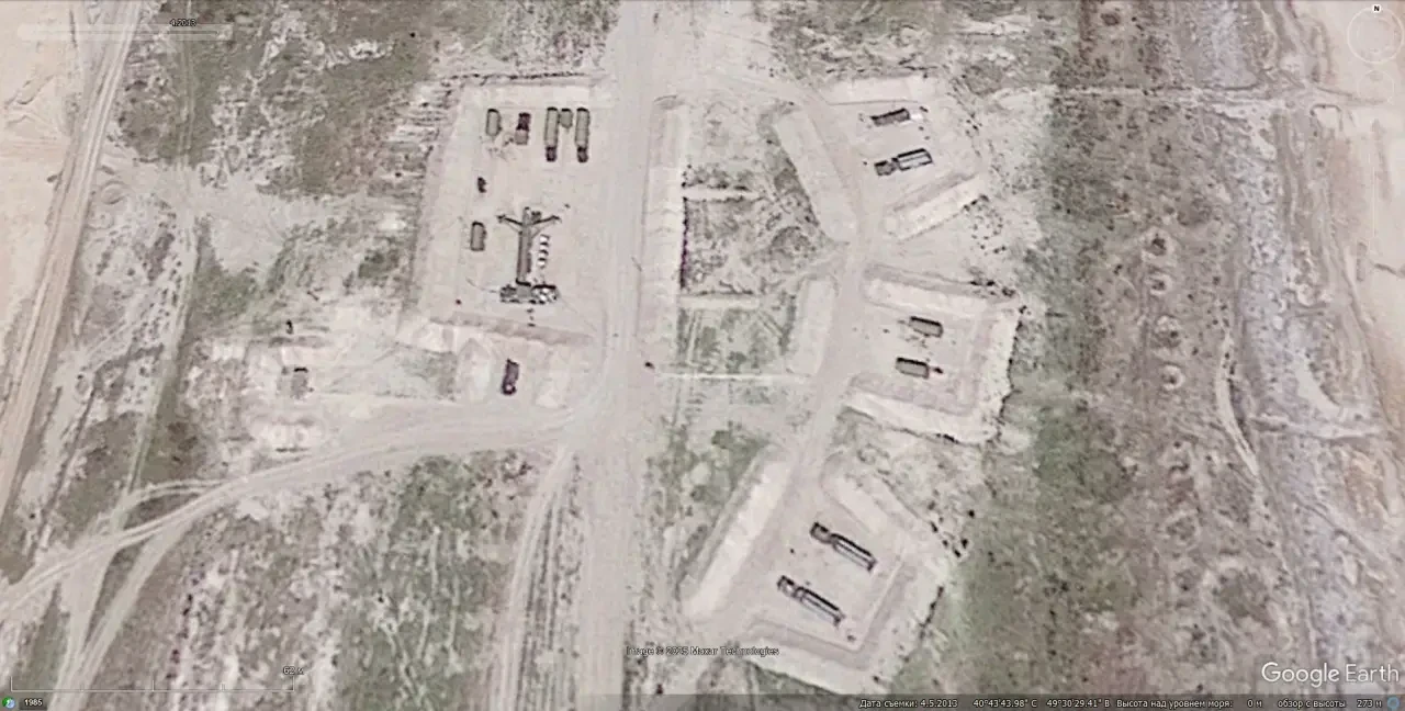 Спутниковый снимок Googlе Еarth: ЗРС С-300ПС юго-западней Алматы на бывшей позиции ЗРК С-200ВМ. Снимок сделан в мае 2023 года
