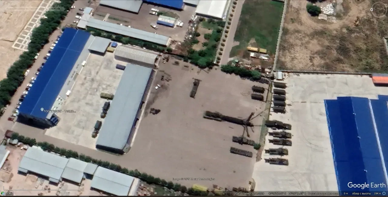 Спутниковый снимок Gооgle Earth: элементы ЗРС С-300ПС на производственной площадке СКТБ “Гранит” в посёлке Бурундай. Снимок сделан в июне 2019 года