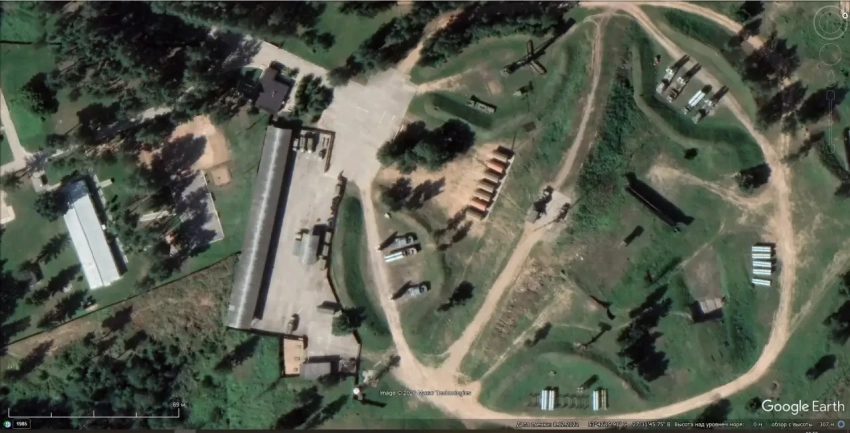 Спутниковый снимок Googlе Еarth: позиция ЗРС С-300ПТ северней Минска. Снимок сделан в апреле 2019 года