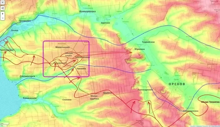Параллельно завершается зачистка Приморского, передовые отряды вышли к Речному. За рекой Конка находится Григоровка, и Юрий Подоляка указывает на высокую вероятность попытки форсирования. Для украинского командования это создает сложную дилемму: усиливать оборону вдоль реки или перебрасывать резервы на Ореховский участок.