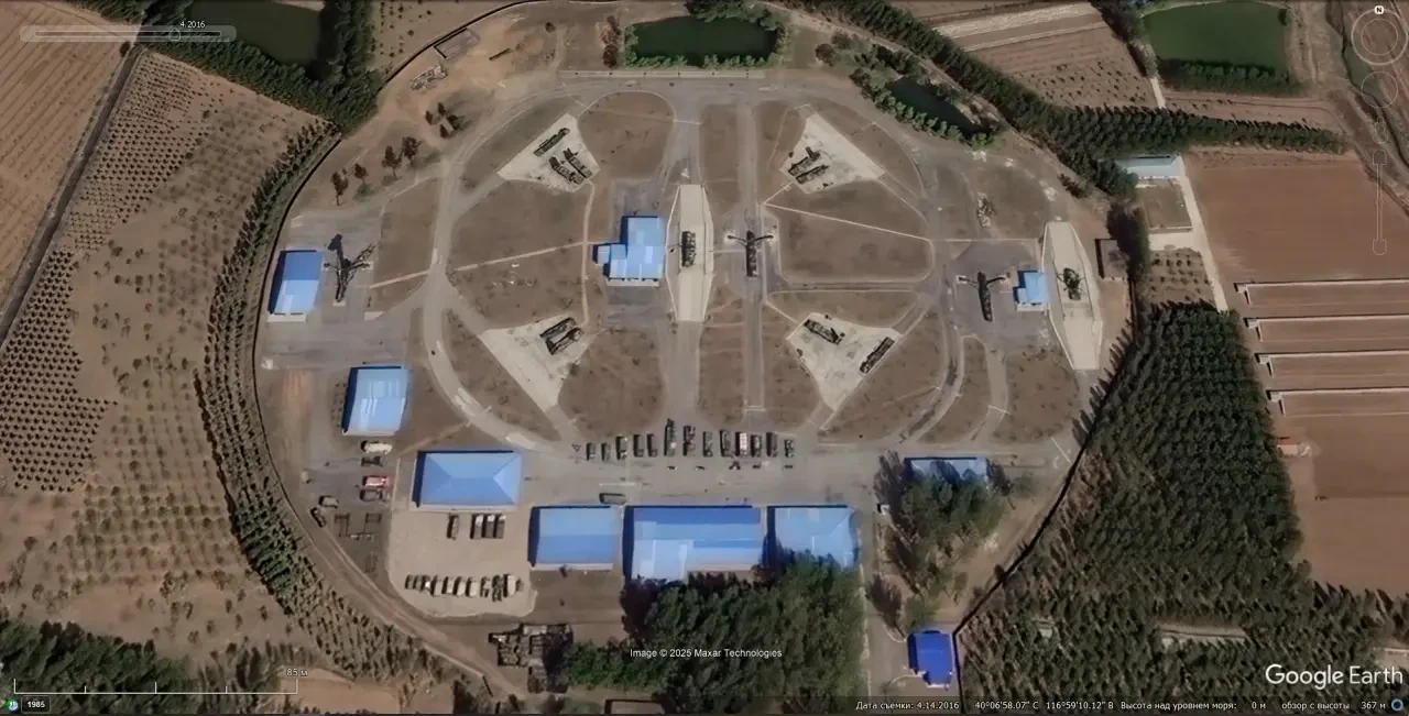 Спутниковый снимок Googlе Еarth: позиция ЗРС С-300ПМУ на северо-восточной окраине Пекина. Снимок сделан в апреле 2016 года