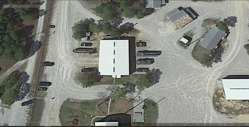 Спутниковый снимок Googlе Еarth: самоходная пусковая установк из состава ЗРС С-300ПС и другая военная техника на полигоне Эглин. Снимок сделан в марте 2013 года