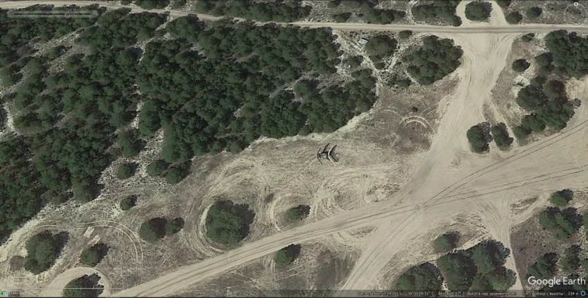 Спутниковый снимок Googlе Еarth: РЛС 19Ж6 неподалёку от стартовой позиции С-300ПМ2. Снимок сделан в апреле 2022 года