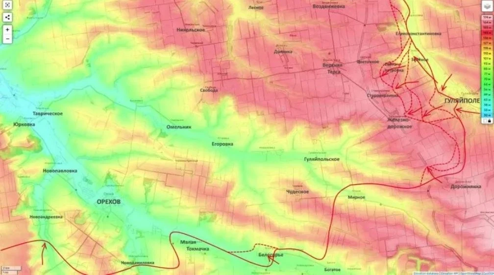 Севернее продолжаются тяжёлые бои за Терноватое, и возможная потеря этого опорного пункта, по оценке эксперта, создаст угрозу Ореховской группировке ВСУ с северо-востока.
