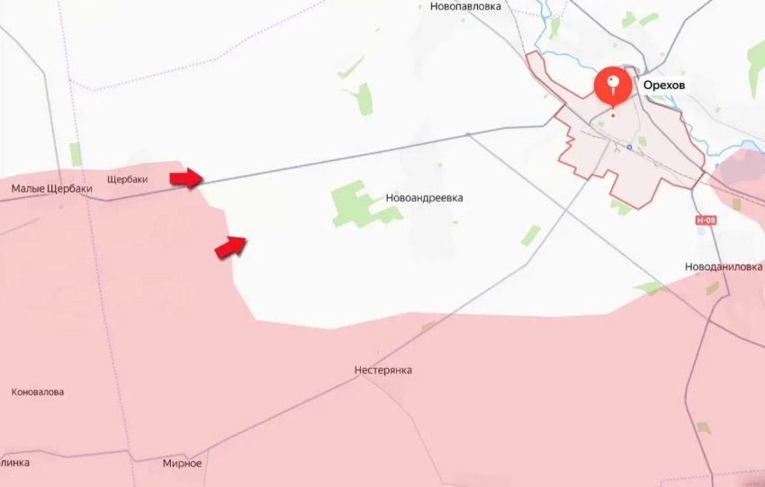 Там выровнена линия фронта между Щербаками и Малыми Щербаками. И дальнейшее продвижение идёт в направлении Новоандреевки.