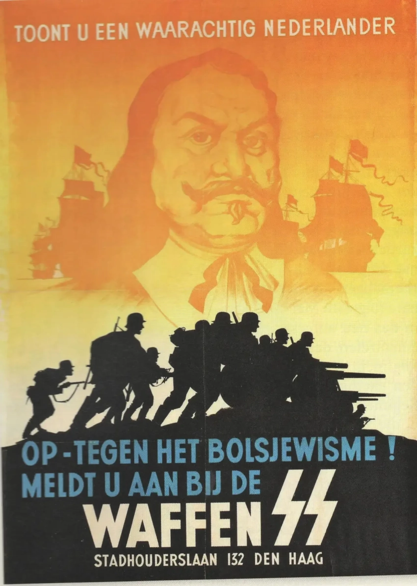 Нидерландский плакат. «Покажи, что ты настоящий нидерландец! Вперед, против большевизма! Вступай в войска СС!». 1943 г.