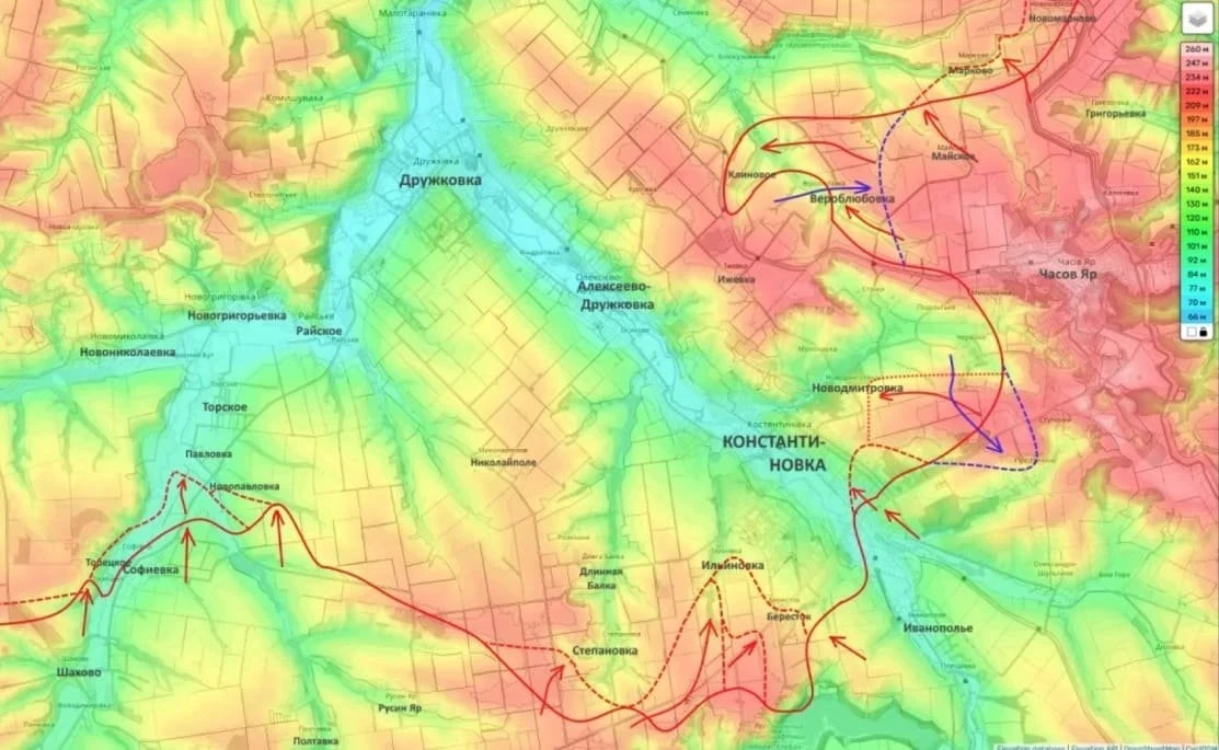 По словам специалиста, российские военные атакуют позиции ВСУ также на территории Константиновки и к югу от неё.