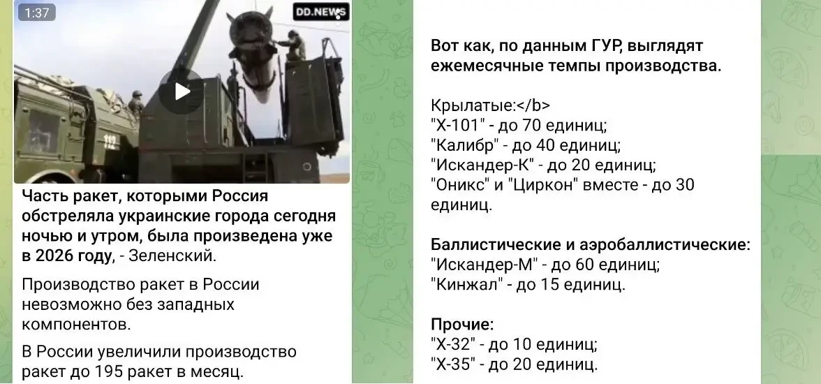 Текущее производство ракет в России по мнению противника