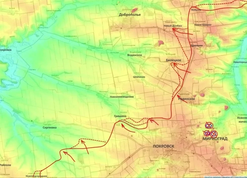 На Покровском направлении идут тяжёлые городские бои. Начальник Генштаба РФ Валерий Герасимов в ходе инспекции подтвердил, что столкновения происходят уже внутри Белецкого и Нового Донбасса. В районе Гришино украинские подразделения были вытеснены с позиций в восточной части села.