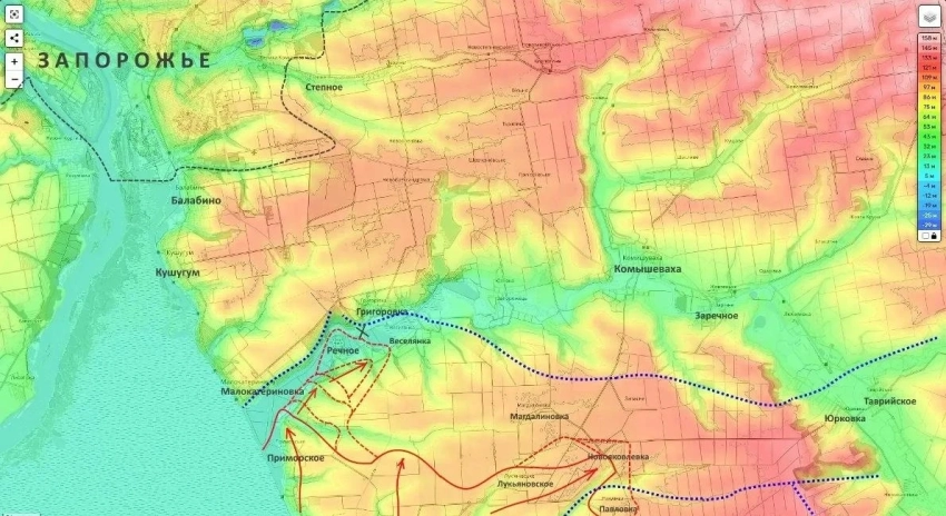 С начала суток под контроль ВС РФ в Запорожской области перешли порядка 14 квадратных километров территории. Приближение к Запорожью с юга увеличивает спектр оружия, которое можно применять по объектам противника в черте областного центра.