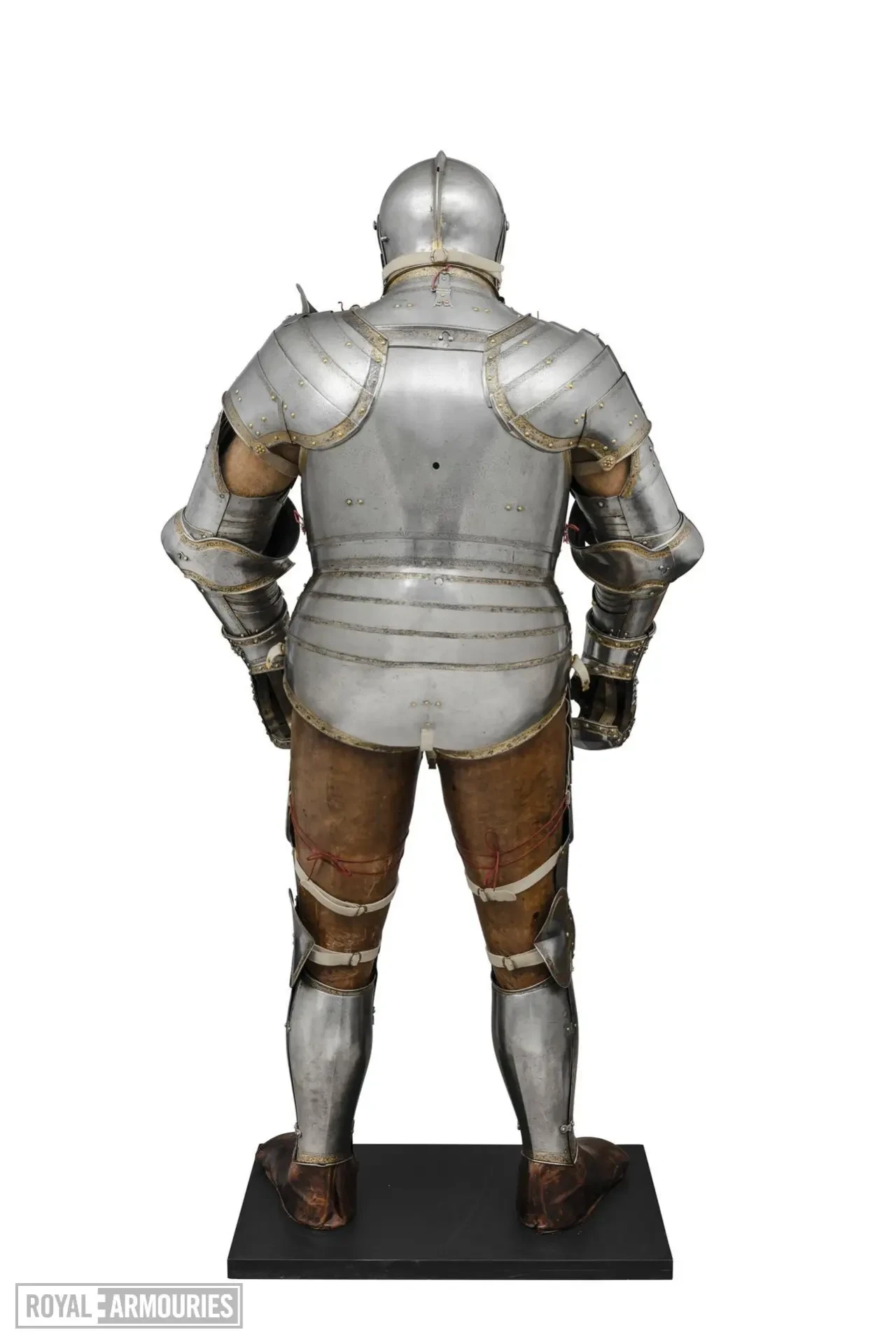Наплечники состоят из пяти пластин, правый наплечник уменьшен спереди для удобства удержания копья. Набедренники выполнены из двух частей, соединенных скользящими заклепками, что позволяет им сдвигаться относительно друг друга. Наплечники гринвичской конструкции состоят из больших пластин, которые полностью охватывают внутренний сгиб локтя. Перчатки типа «варежка», манжеты которых открываются на шарнирах. Наколенники имеют большие веерообразные «раковины», имеющие форму «сердца». Наголенники заканчиваются у лодыжки и имеют окантовку, позволяющую надевать их поверх сабатонов, которые сейчас отсутствуют.