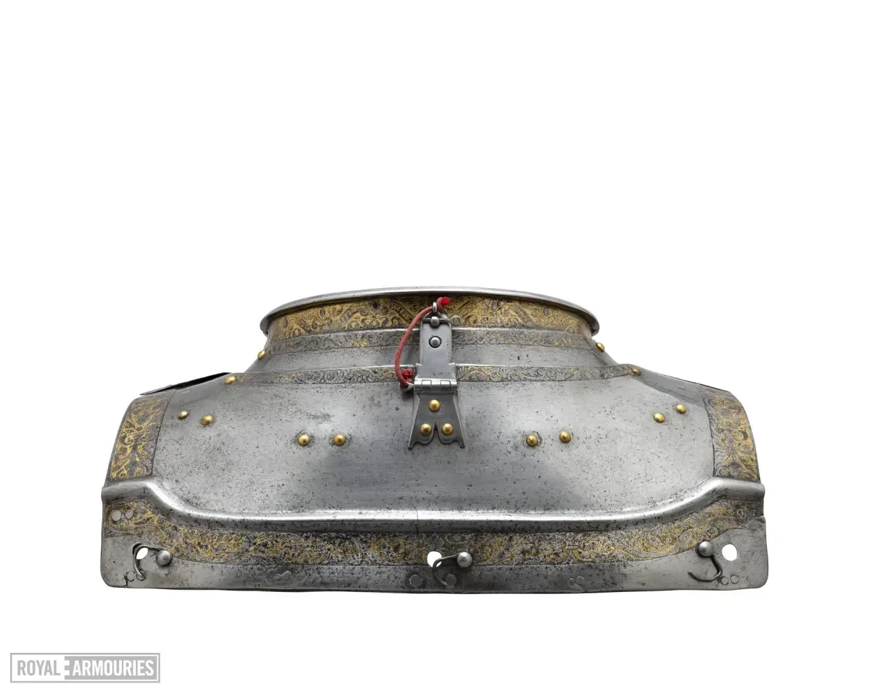 Нагрудная пластина со слегка выступающим центральным гребнем имеет подвижные вставки; имеются три штифта или скобы для крепления отсутствующей усиливающей нагрудной пластины, а в центре — отверстие для болта, который, помимо удержания усиливающей нагрудной пластины, также служил для крепления еще и внутренней набрюшной пластины. Аналогичное отверстие имеется в спинной пластине для задней пластины. Размер спинной пластины был увеличен за счет пластин, приклепанных с обеих сторон. Нагрудник и спинная пластина скрепляются между собой на шарнирах и плечевыми ремнями типичной гринвичской конструкции. Кираса шарнирно соединена на талии, и к этой пластине на груди прикреплены набедренник из трех пластин и длинные набедренники из шести пластин, все пластины перекрывают друг друга подобно черепице. К спинной пластине прикреплена набедренная пластина из трех пластин (четвертая, верхняя пластина отсутствует) при помощи штифтов.