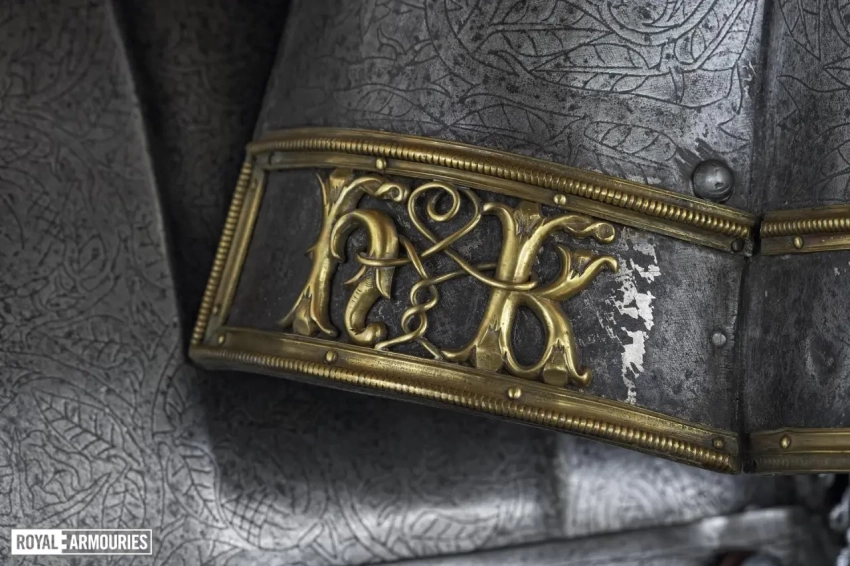 На верхней пластине передней части горжета выгравирована дата «1540», а на полосе по верхнему краю нагрудника в центре изображена коронованная буква «H». Доспехи были привезены из Гринвича в Лондон в 1649 году. Перчатки-«варежки» перевезены из Виндзорского замка в 1914 году.