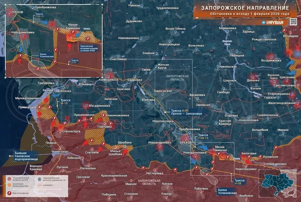 Карта боевых действий на Украине. Обстановка в зоне СВО по данным на 2 февраля 2026