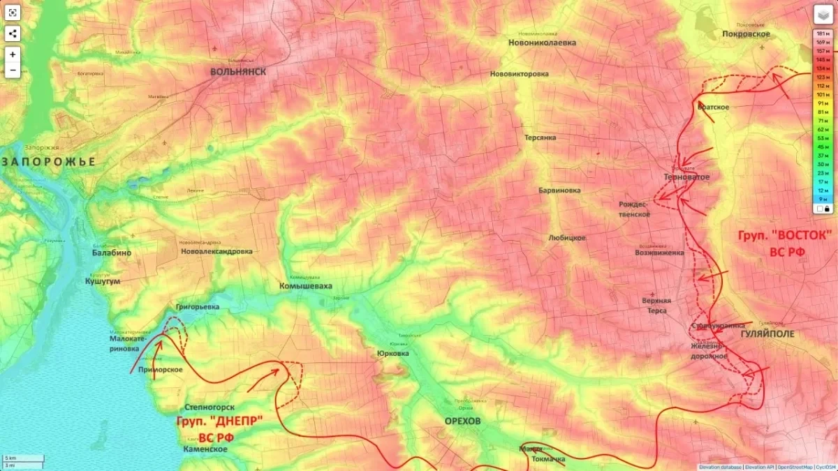 Замысел командования на этом участке становится очевидным: выход к линии реки Конка с перспективой форсирования водной преграды. Создание плацдарма на правом берегу откроет возможность для наступления непосредственно на город Запорожье. Также рассматривается сценарий флангового удара в направлении Юрковки, что позволит обойти укрепленный Орехов с запада, взяв его в клещи.