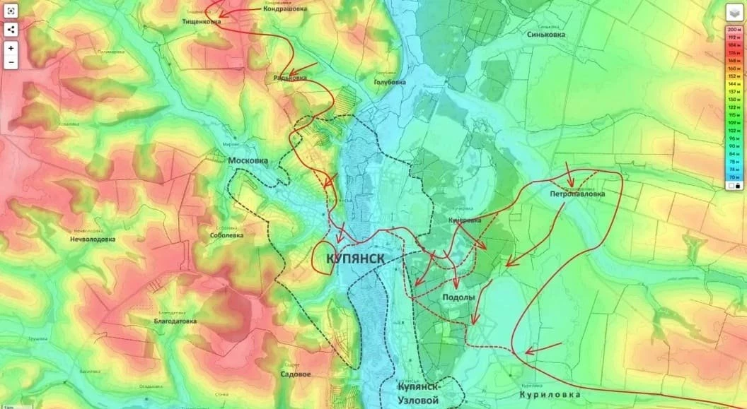 В свою очередь на Купянском фронте ситуация для украинской группировки на левом берегу реки Оскол под Купянском становится критической. За последние дни российские войска сумели сломить сопротивление противника в Песчаном, выбили боевиков из лесных массивов южнее реки Дубровка и вышли к дамбе восточнее Новоосиново.