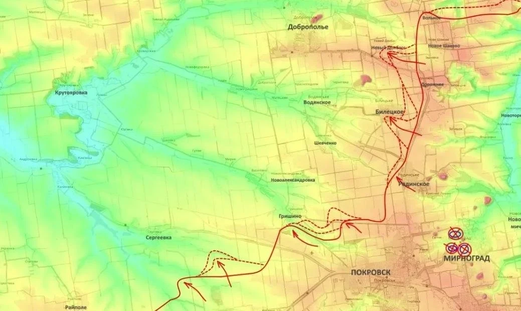 На Покровско-Кураховском направлении продолжается движение от Новоподгороднего в сторону Межевой. Усиливается давление на линию Сергеевка - Вольное, а продвижение в районах Белицкого и Нового Донбасса указывает на нарастающие сложности с удержанием обороны.