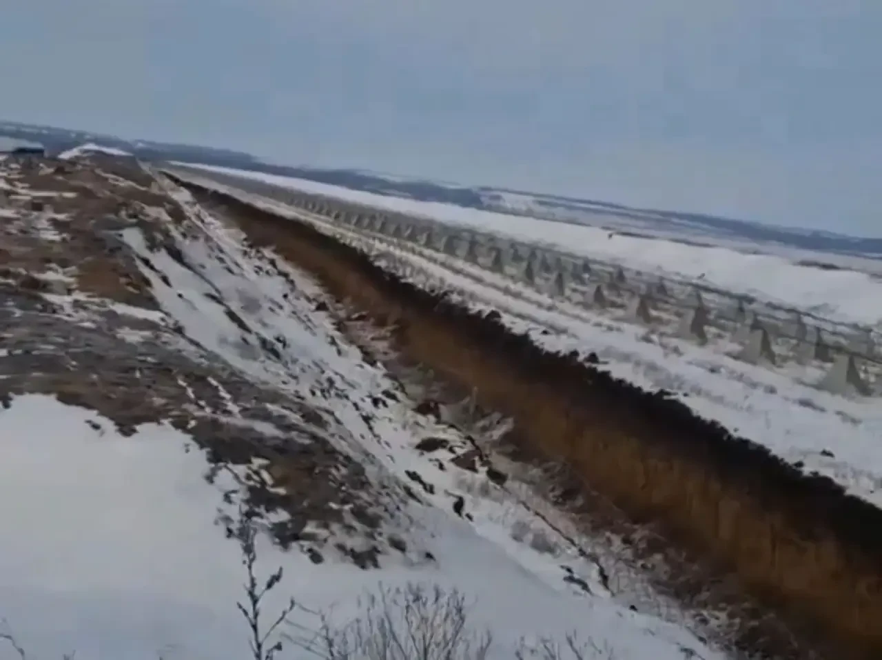 В частности, запечатлены два противотанковых рва, внутри которых три ряда спирали Бруно и тетраэдры («зубы дракона») тоже со спиралью. Однако при этом остается неизвестным, обустроены ли подобные оборонительные линии по всей протяженности ЛБС на этом участке фронта или на кадрах показан лишь наиболее укрепленный отрезок.
