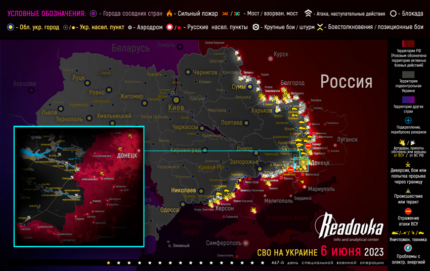 Карта военных действий и ситуация на фронтах вечером 6 июня от Телеграм-канала «Readovka»