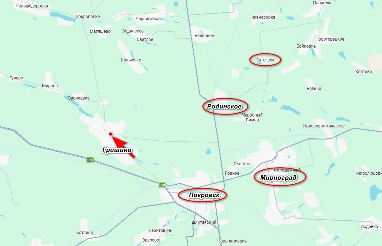 Однако это привело к ослаблению позиций ВСУ под Покровском, чем и воспользовались российские войска, продвинувшись в Гришино. По имеющимся данным, штурмовики ВС РФ заняли центр города и удерживают его, несмотря на контратаки врага. Также бои идут на северо-западной окраине города. Кроме того, заняты часть опорников ВСУ к северу от дороги Покровск — Родинское, нашим удалось продвинуться на 1,5 км.