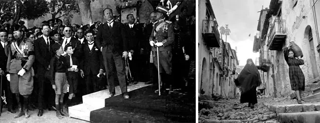 На фото слева: визит Муссолини на Сицилию. На фото справа: типичный городок Сицилии