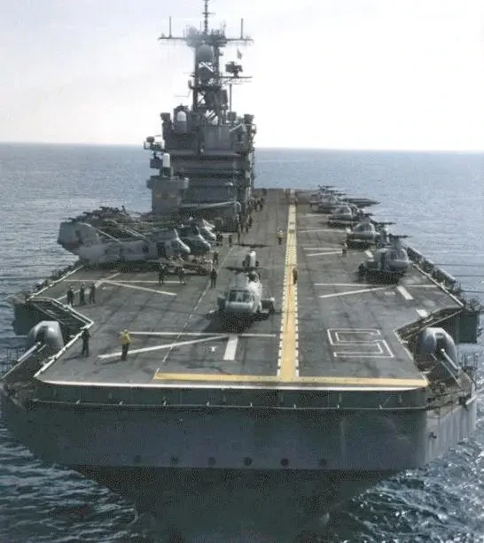 Водоизмещение 11 000 тонн. Сплошная полетная палуба протяженностью 180 м. Дюжина транспортных вертолетов. Возможность принять на борт 2000 морских пехотинцев.