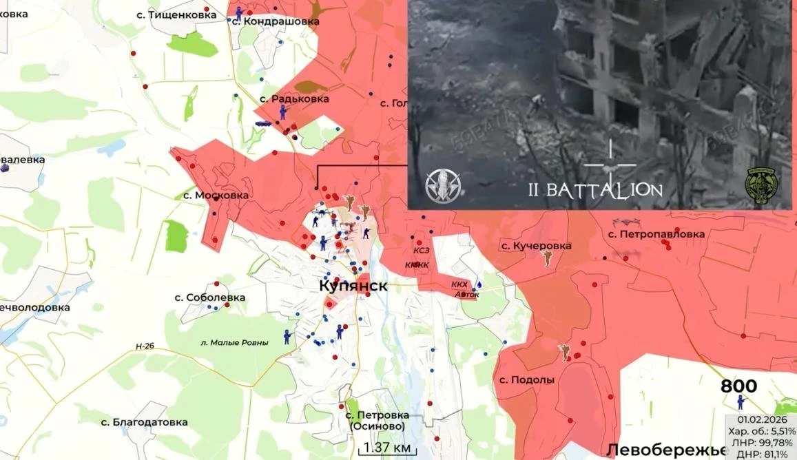 Карта боевых действий на Купянском направлении по данным на 18.02.2026