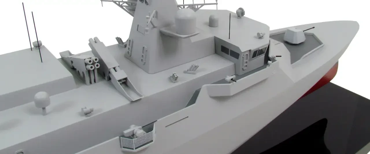 Шведская оборонная компания возглавляет интеграцию боевой системы, опираясь на недавний опыт сингапурского многоцелевого боевого корабля и польского корабля радиоэлектронной разведки, второй из которых был спущен на воду в январе. Как сообщила компания Saab изданию Breaking Defense, она также поставляет полностью укомплектованные композитные надстройки, противокорабельные ракеты и легкие торпеды.