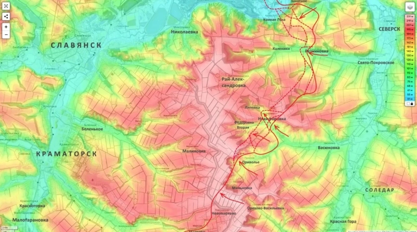 По его словам, продвижение происходит через лесные массивы в направлении населённых пунктов Брусовка и Старый Караван. Этот участок рассматривается как важный с точки зрения контроля над дорогами, ведущими к Славянску.