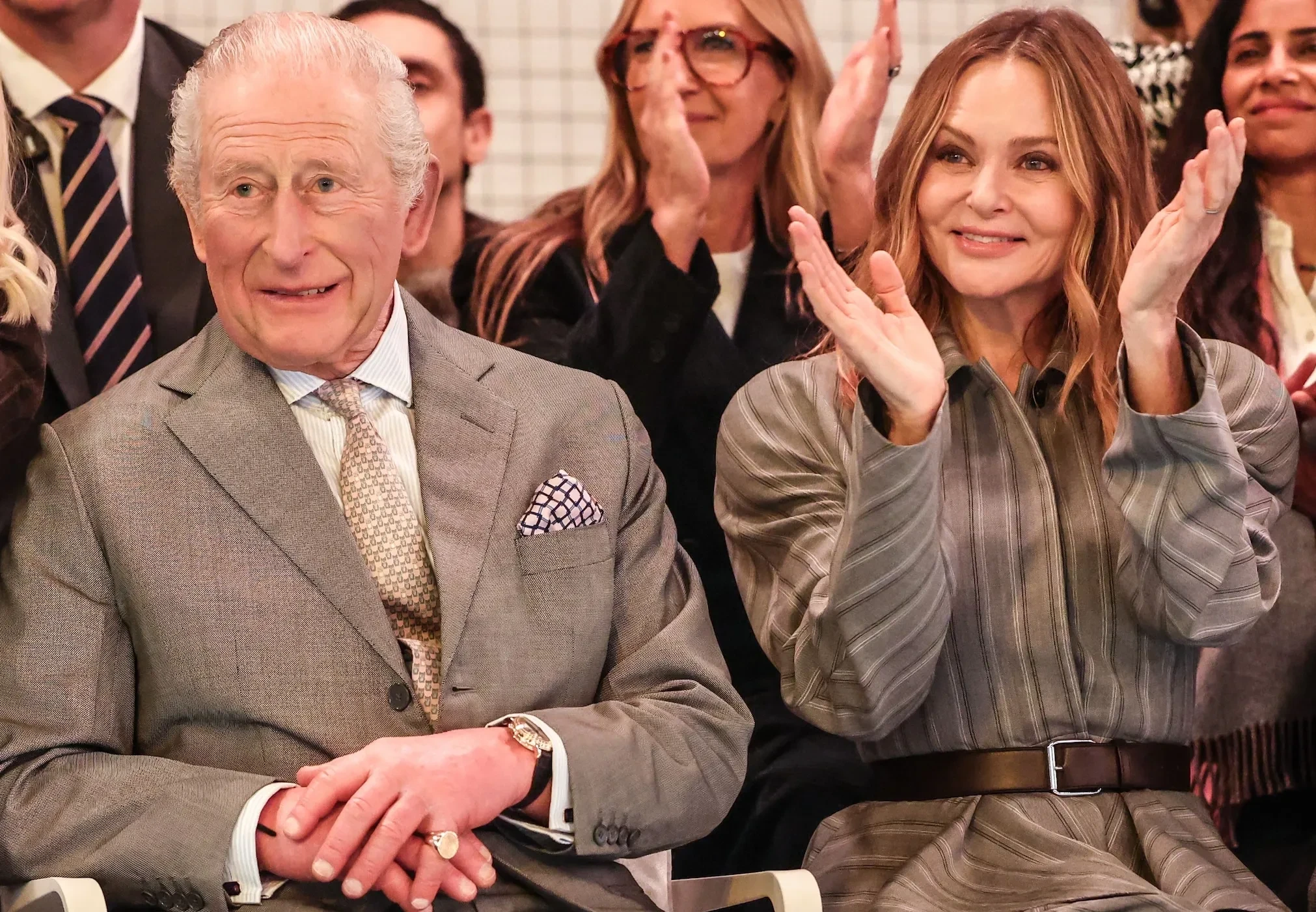 Неделя моды в Лондоне: король Карл III впервые посетил модный показ — сразу после ареста брата, экс-принца Эндрю