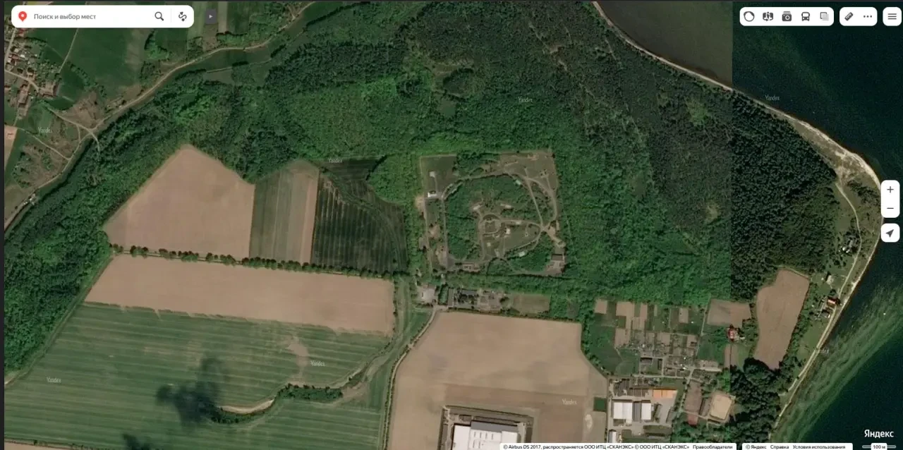 Спутниковый снимок Яндекс Спутник: тот же участок местности в 3 км восточней польского города Пуцк