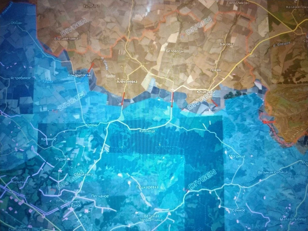 Севернее ведутся бои за Кривую Луку, а в районе Резниковки и Никифоровки российские части расширили зону контроля, продвигаясь к Липовке.