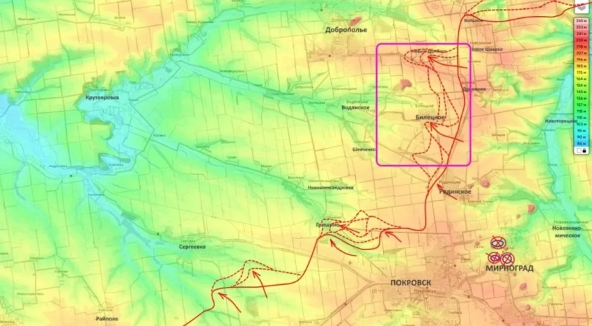 На Покровском участке фронта не смолкают очень ожесточённые боевые действия в населённом пункте Гришино. На сегодняшний день почти половина этого села находится под контролем Вооружённых сил России.