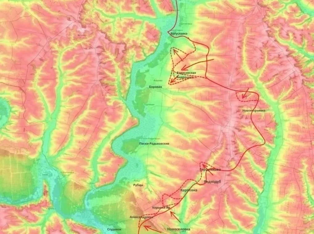 Заметные изменения происходят и на Славянско-Краматорском направлении. По информации Подоляки, российские силы, опираясь на освобождённую Липовку, ведут бои во Второй Федоровке и зачищают балки к югу от Александровки. Подготовка, как утверждается, ведётся к выходу на господствующие высоты в районе Калиновки и Кривой Луки.