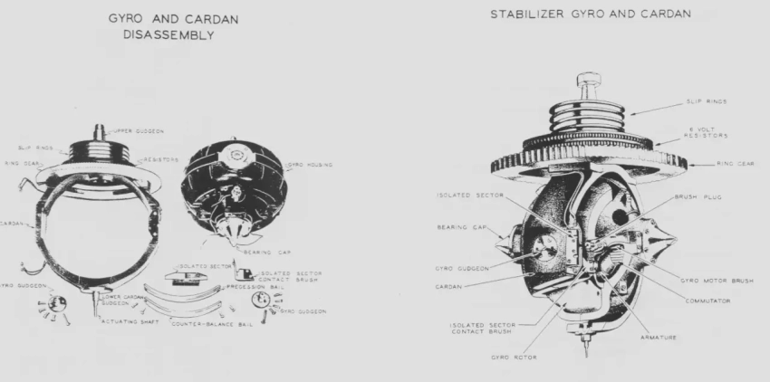 В 1931 году компания Нордена представила флоту первый прототип прицела Mark XV. Чтобы сделать телескоп прицела независимым от тряски самолета, его подвесили на карданных опорах — кольцевых подшипниках, позволявших оптике сохранять горизонтальное положение при кренах. Внутри находились два гироскопа на постоянном токе: один для вертикальной ориентации, другой — для азимутальной. Оба вращались со скоростью 7800 об/мин. Через электромеханический сервопривод азимутальный гироскоп стабилизировал оптику, позволяя синхронизировать перекрестие с курсом захода на цель.