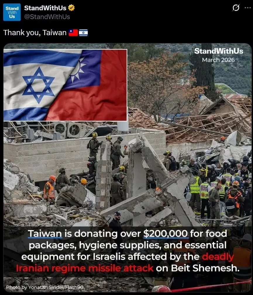 В Тайбэе заявили, что направили в Израиль продуктовые наборы, средства гигиены и необходимое оборудование на сумму более 200 тысяч долларов. Тайваньские власти заявили, что эта помощь нужна Израилю «в связи со смертельной ракетной атакой иранского режима по Бейт-Шемешу».