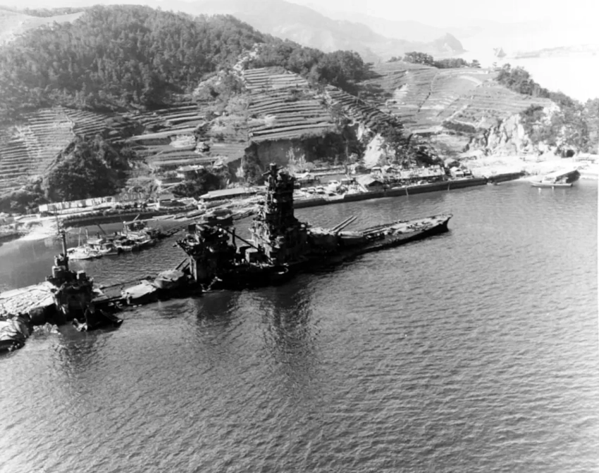 Линкор «Исэ», затонувший в военно-морской базе в Куре
