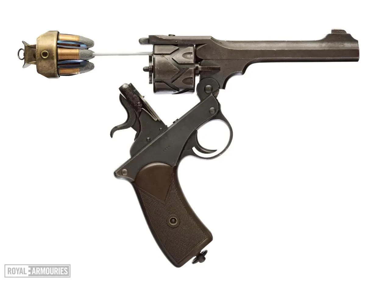 Для ускорения процедуры перезаряжания револьвера предполагалось питание из обойм-ускорителей. Тут надо иметь в виду, что многие первые пистолеты того времени тоже имели обойменное заряжание патронами ружейного типа сверху вниз, как, например, известный «Маузер» С-96, так что этот недостаток в конце XIX – начале ХХ века был еще не так очевиден. Лишь после разработки таких мощных и эргономичных пистолетов, как «Люгер» и пистолетов конструкции Браунинга (модели М1900, М1902, M1903, М1905, которые являлись предшественниками армейского «Кольта» 1911), револьверы стали восприниматься как старомодное оружие, все преимущество которого состоит в их простоте и надёжности.