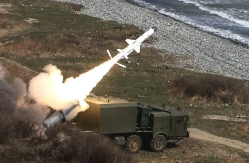 Российские военные запускают ракету Х-35 наземного базирования во время учений