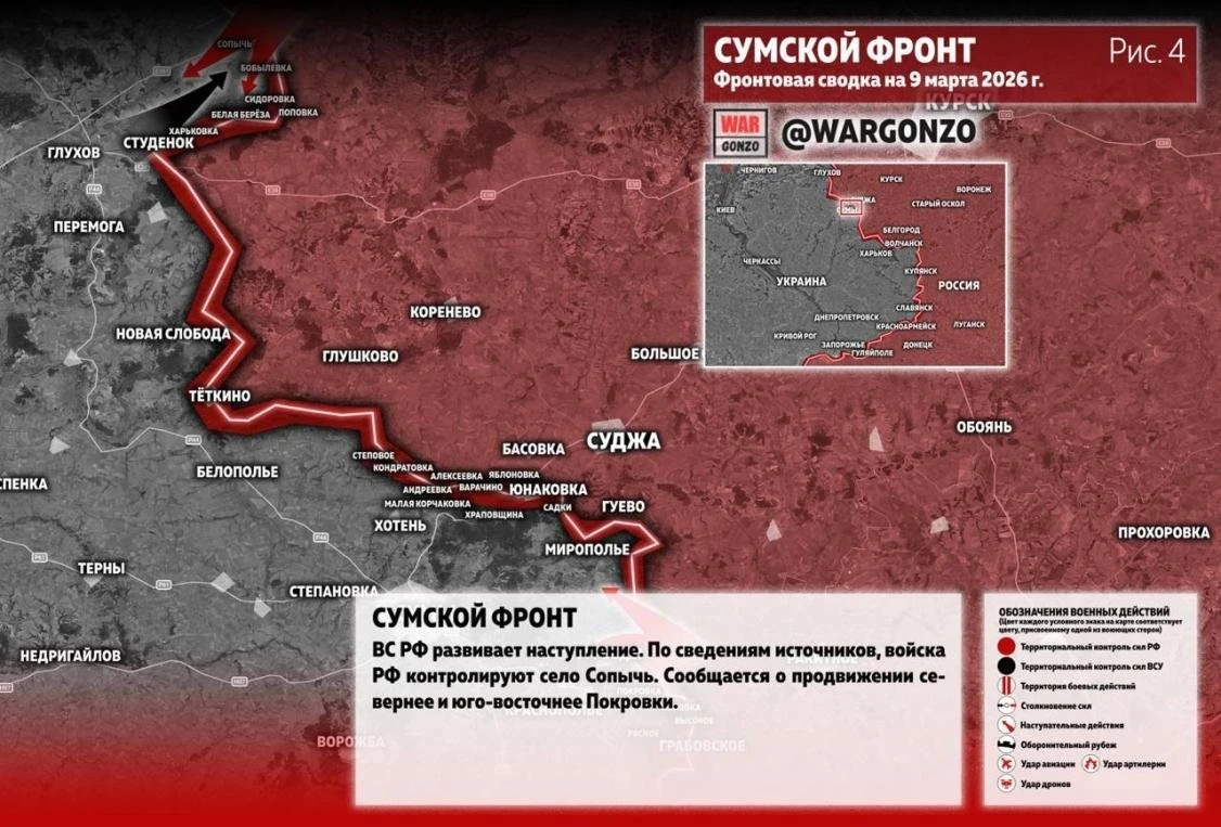 Последняя сводка СВО от Юрия Подоляки на 09.03.2026: ВС РФ развивают прорыв в Сумской области