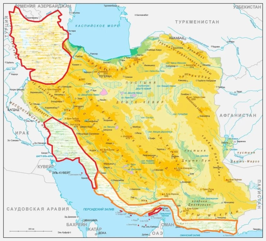 Карта демонстрирует максимум, на который могут рассчитывать США в Иране, собрав все доступные ресурсы для сухопутной операции без, само собой, всеобщей мобилизации, перевода экономики на военные рельсы и применения ядерного оружия. При этом захват этой территории совершенно не означает эффективной долгосрочный контроль над ней, свободное использование всех её ресурсов и свержение центральной власти в Тегеране. Стоимость такой авантюры составит триллионы долларов, а число потерь среди войск коалиции будет исчисляться десятками тысяч.
