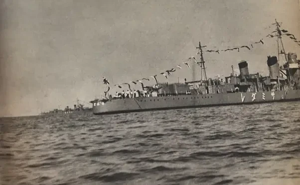 «Самидаре» у берегов Йокогамы во время смотра флота. За ним следует эсминец «Арасио»
