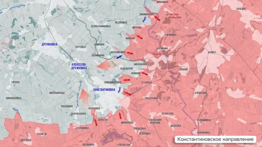 На Константиновском направлении обстановка в районе Ильиновки и Берестка за сутки не изменилась, там идут позиционные бои и попытки продвинуться в юго-западной части Константиновки.