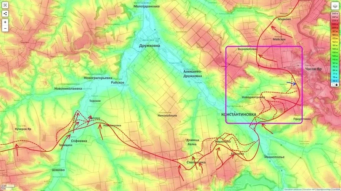 На Константиновском направлении российские войска продолжают операцию по охвату города с нескольких направлений. Существенным фактором, повлиявшим на динамику боёв, стали точечные удары по гидротехническим сооружениям.
