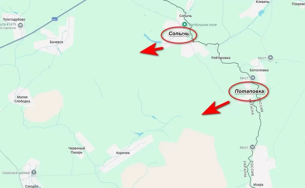 После освобождения нашими войсками села Сопычь, ожесточенные бои развернулись юго-восточнее, где противник удерживал позиции, с которых очень удобно было наносить удары беспилотниками по Курской области. Кроме того, враг попытался отбить обратно село Сопычь, но вместо этого потерял и соседнюю Потаповку. Оба села являются приграничными и дают нашим войскам возможность создать плацдарм для дальнейшего продвижения вглубь Сумской области, пишет "Военное обозрение".