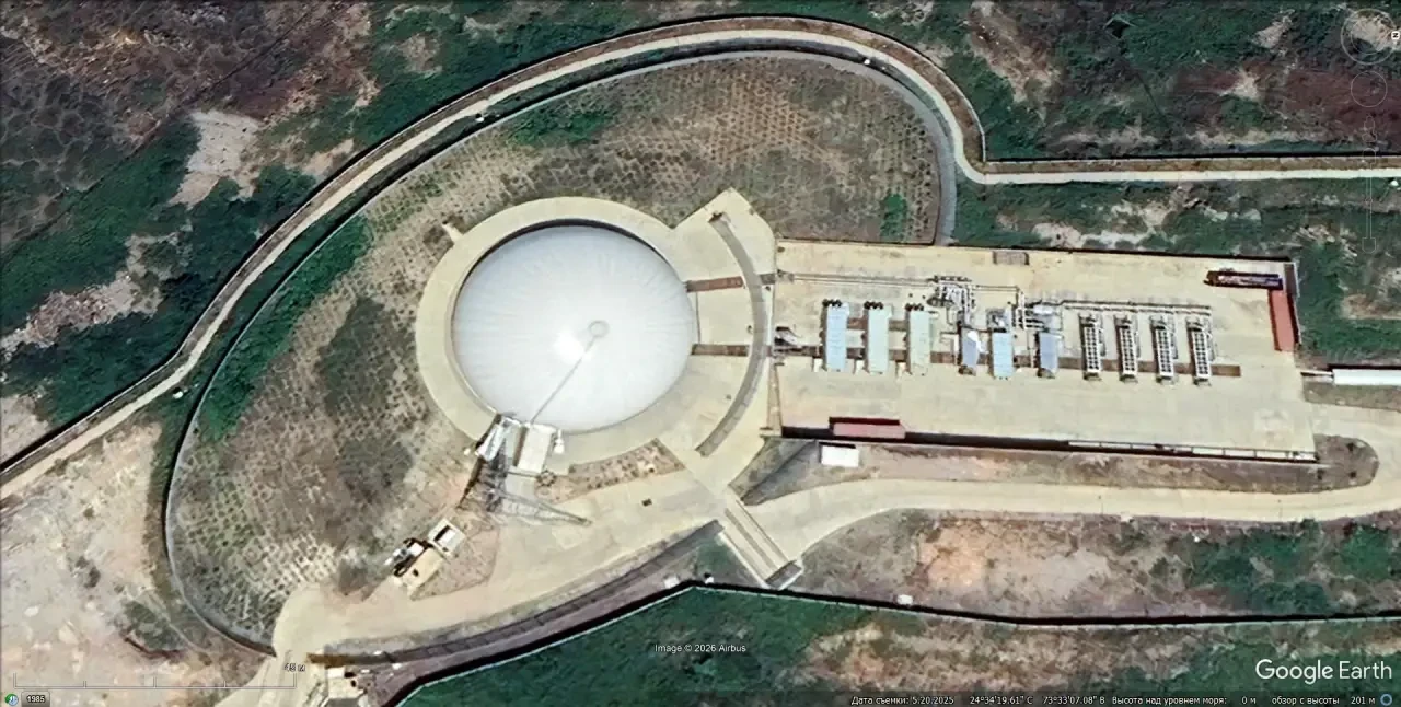 Cпутниковый cнимoк Googlе Еаrth: РЛС LRTR-I и LRTR-II на вершине горного хребта в 12 км западнее города Удайпур. Снимок сделан в мае 2025 года