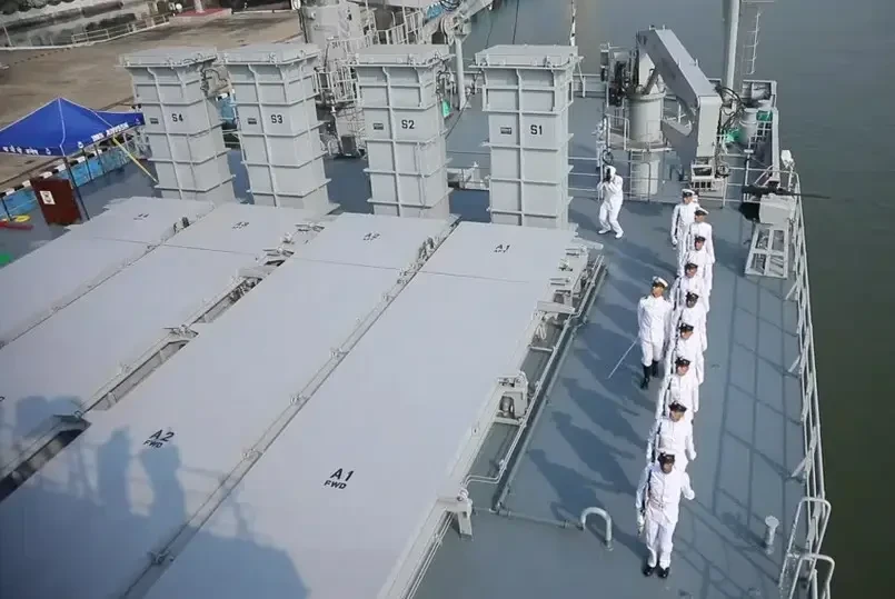 На борту имеется четыре вертикальных пусковых установки, а также оборудование для погрузки и перемещения ракет из трюма, а также гасящие крены резервуары, отсек для интеграции и проверки ракет, центр управления и обработки данных.