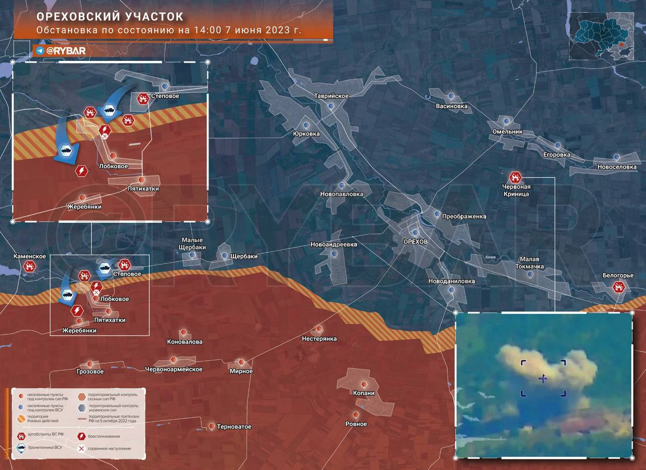 Карта боевых действий: Ореховский участок обстановка по состоянию на 15.00 7 июня 2023 года