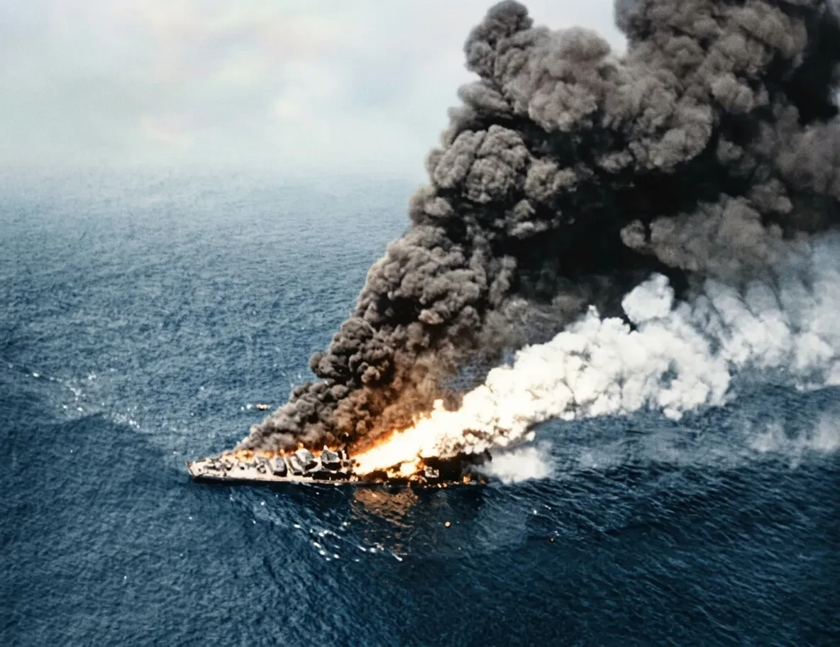 Акидзуки взрывается во время сражения у мыса Энганьо