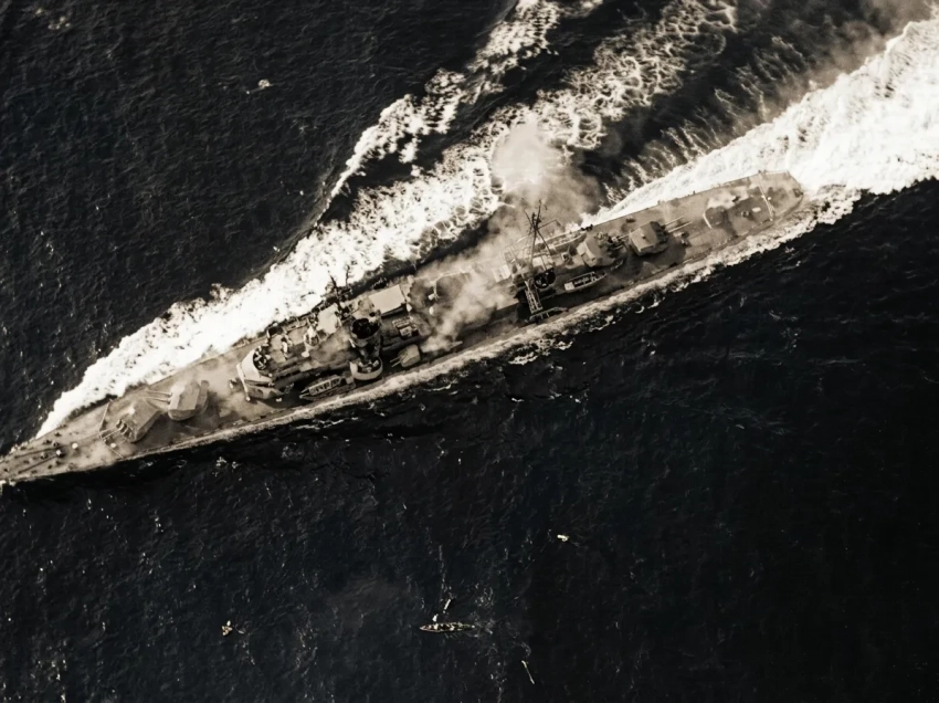 «Дзуйкаку» и «Вакацуки» под обстрелом во время битвы в заливе Лейте, 25 октября 1944 года
